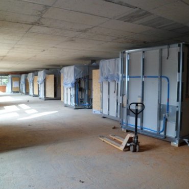 Originally, the construction of the nursing home in Cadine has been planned using a traditional approach. The benefits of prefabricated bathrooms, though, ultimately convinced the building owner. He particularly appreciated the faster construction progress, the fixed price g...
