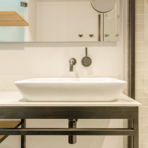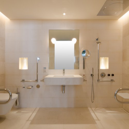 Saniclass stands for a prefabricated bathroom cell in lightweight construction, whereby the self-supporting components of the pod are manufactured in dry construction. For the interior, there are no limits to the creativity with this product line. Individual design and a variety of materials are utilized to satisfy the customer requirements. We round off our service with the building services system on the outside of the bathroom pod, which creates a complete prefabricated bathroom solution with simple interfaces. Saniclass is the ideal solution for new buildings.