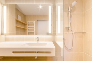 La Provincia Autonoma di Bolzano sta realizzando un convitto studentesco con mensa per la nuova sede della scuola alberghiera di Brunico. L'innovativo progetto ha previsto già dal principio l'uso di bagni prefabbricati, metodo di costruzione per stringere i tempi di realizzazione e per razionalizzare i processi in cantiere. La Unionbau S.R.L. di Campo Tures (BZ), incaricata della costruzione dell'immobile, ha scelto i moduli bagno Sanika di tipo Saniclass FS con struttura in montanti in lamiera zincata e lastre in gessofibra Fermacell®. Le interfacce sono state coordinate assieme all'Architetto Matteo Scagnol di Modus Architects, responsabile della progettazione esecutiva, per garantire un'implementazione senza problemi. La costruzione e fornitura dei 63 bagni piastrellati Saniclass è stata ultimata in brevissimo tempo e approvata dalla Direzioni Lavori affidata all'Architetto Karl Kerschbaumer di Kerschbaumer Pichler & Partner. La commessa è stata ultimata sodisfando in pieno tutte le richieste dei partecipanti al progetto.